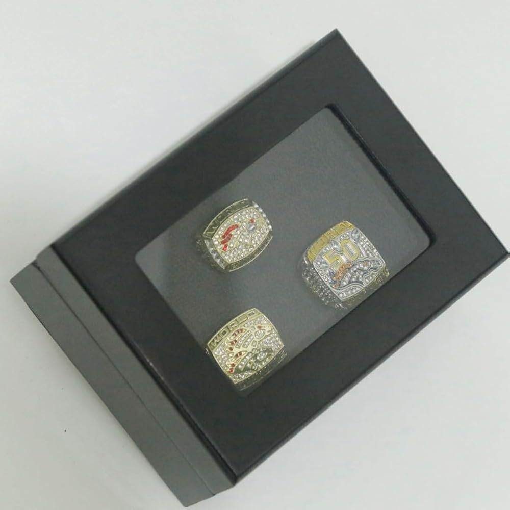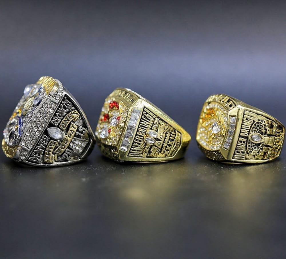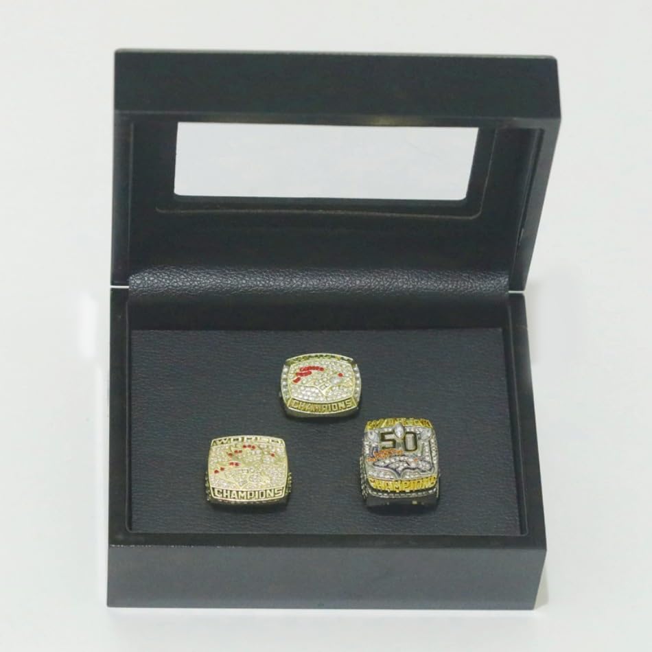 TREASURE FOOTBALL CHAMPIONSHIP RING SET 1997 1998 2015 & LUXURY LEGEND VICTORIOUS RARE SPORTS FAN GIFT SERIES - WITH SANDALWOOD BOX HOLIDAY SHOW COLLECT