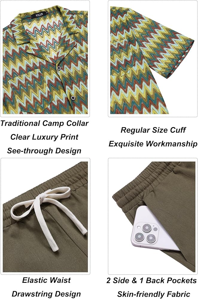 Versatile 5-in-1 Outfit: Beach-Ready to Party Chic with Colorful See-Through Style>>>>>Perfect for Hawaiian vacations, poolside lounging, or streetwear vibes, this mens short sleeve shirt shorts set effortlessly transitions from casual to glamorous. The bold wave-stripe sheer fabric adds a tropical flair, while the camp collar design elevates your look for parties&resort nights. Pair with flip-flops for a laid-back day or dress up with sneakers for urban adventures-no outfit changes needed!