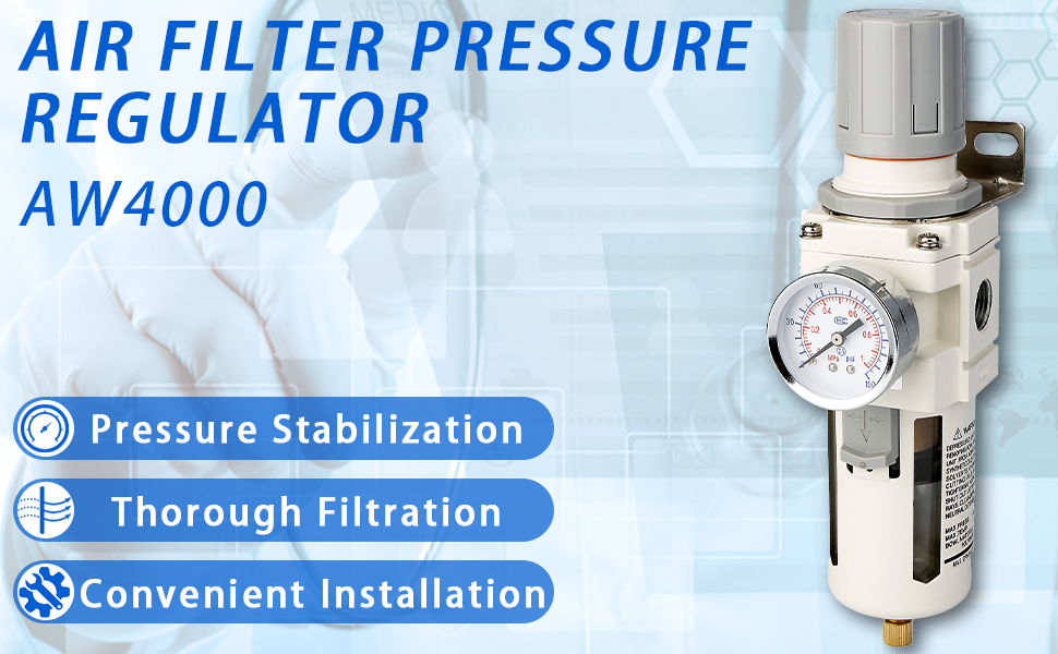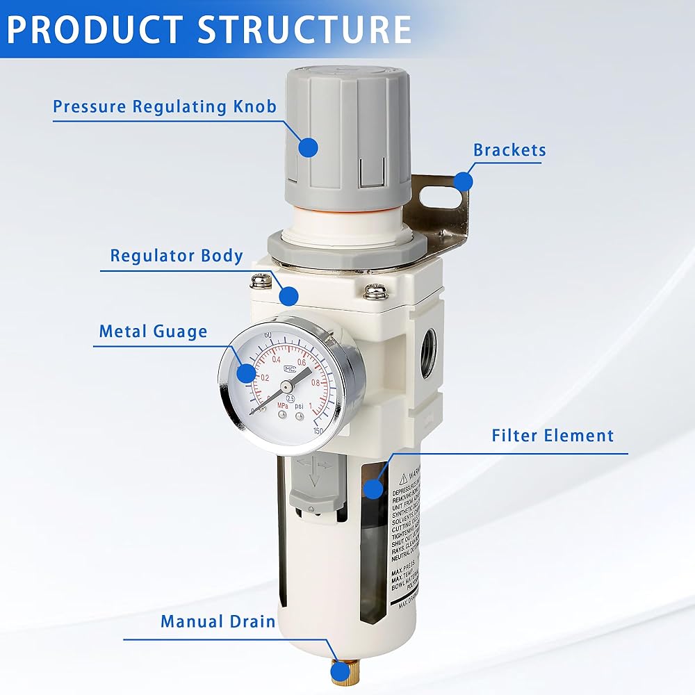 【Flow Rate & Filtration】: In terms of performance, this product is rated at a flow rate of 4000L/min and has an astonishing filtration accuracy of 25µm, ensuring high cleanliness of the output air. It is also equipped with a precise pressure gauge that displays the working status in real time.