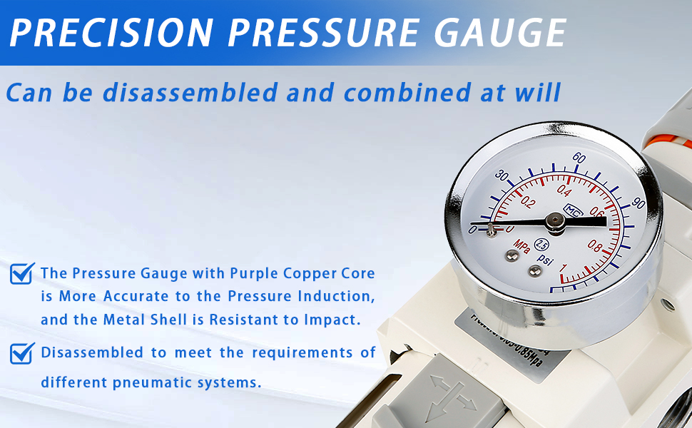 【Combo Unit】: This air oiler filter Features a 5 Micron Brass Filter Element which can remove dust and impurities in the air to protect the equipment and extend its lifespan; the internal valves can precisely control the gas flow rate, reducing energy consumption and enhancing work efficiency.