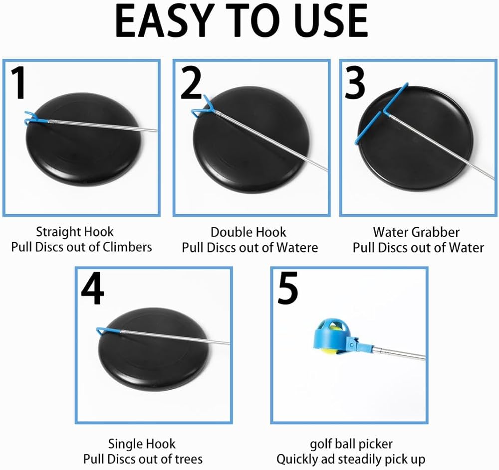 𝐌𝐮𝐥𝐭𝐢-𝐇𝐨𝐨𝐤 𝐃𝐞𝐬𝐢𝐠𝐧 𝐟𝐨𝐫 𝐒𝐞𝐜𝐮𝐫𝐞, 𝐕𝐞𝐫𝐬𝐚𝐭𝐢𝐥𝐞 𝐆𝐫𝐢𝐩: With multiple hook attachments, this disc golf grabber offers a secure, adjustable grip, making it easier to recover discs stuck in trees, water, or rocks. Say goodbye to the hassle of searching for lost discs and get back to your game quickly.
