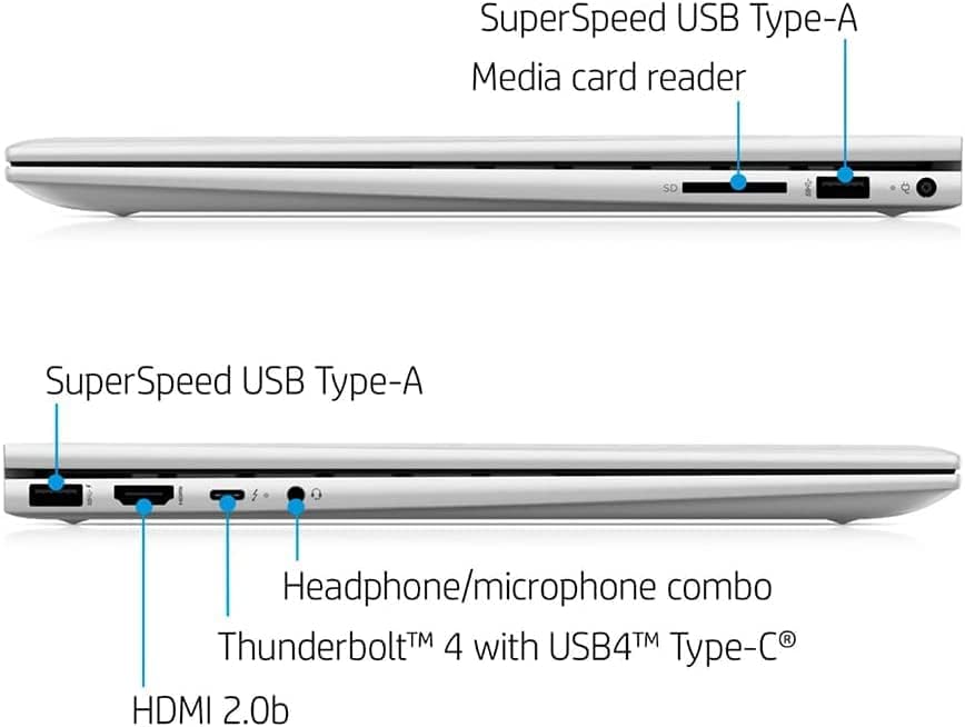 • 【Windows 11 included】3-cell Lithium-ion Battery. 14.13"x 8.98"x 0.72", 4.02 lbs. Ports: 2x USB 3.0 Type A, 1x Thunderbolt 4 with USB4 Type-C, 1x Headset, 1x HDMI, 1x Media Card Reader. Fingerprint reader. 360° geared hinge. Wireless-AC + Bluetooth, Natural Silver. Bonus 32GB USB Card.