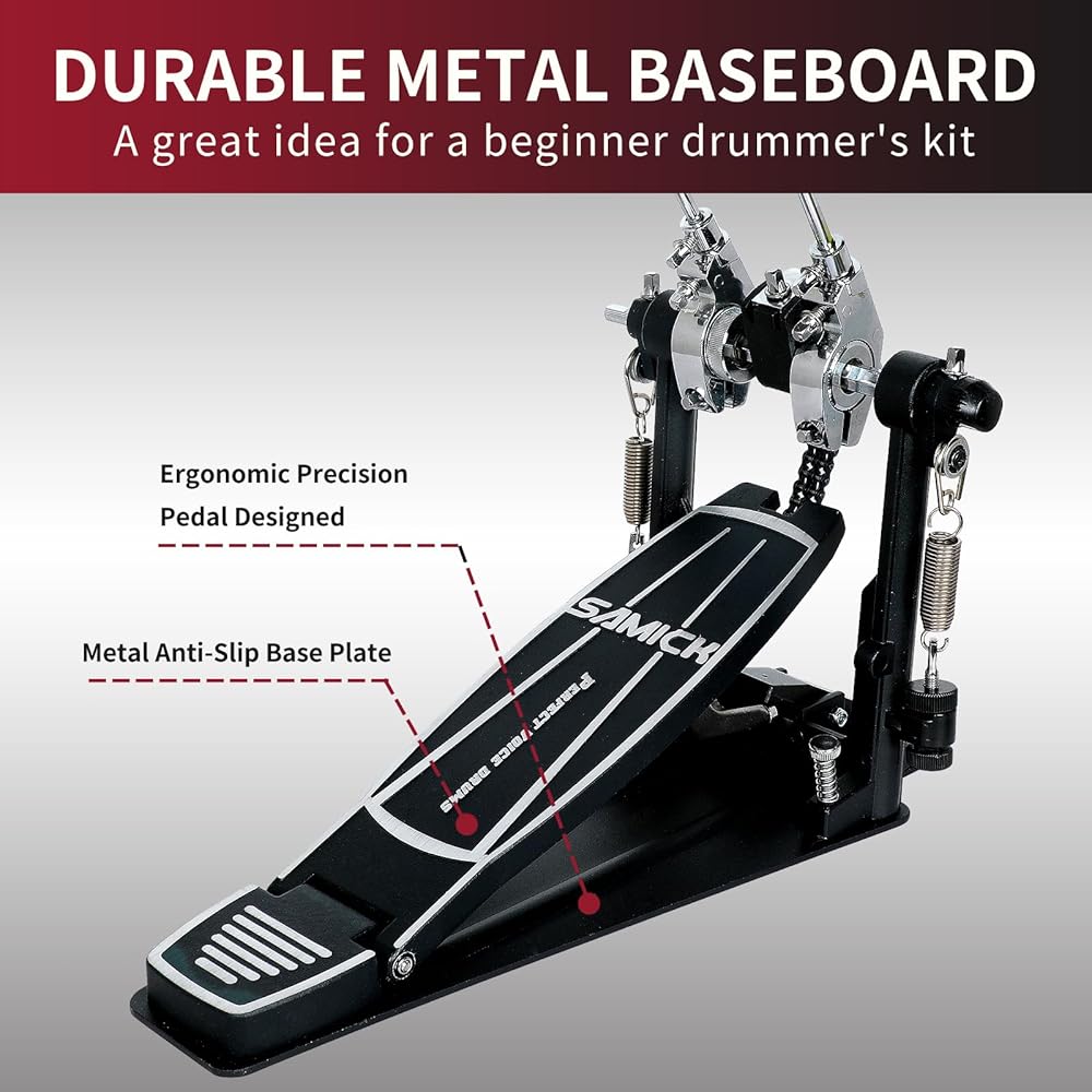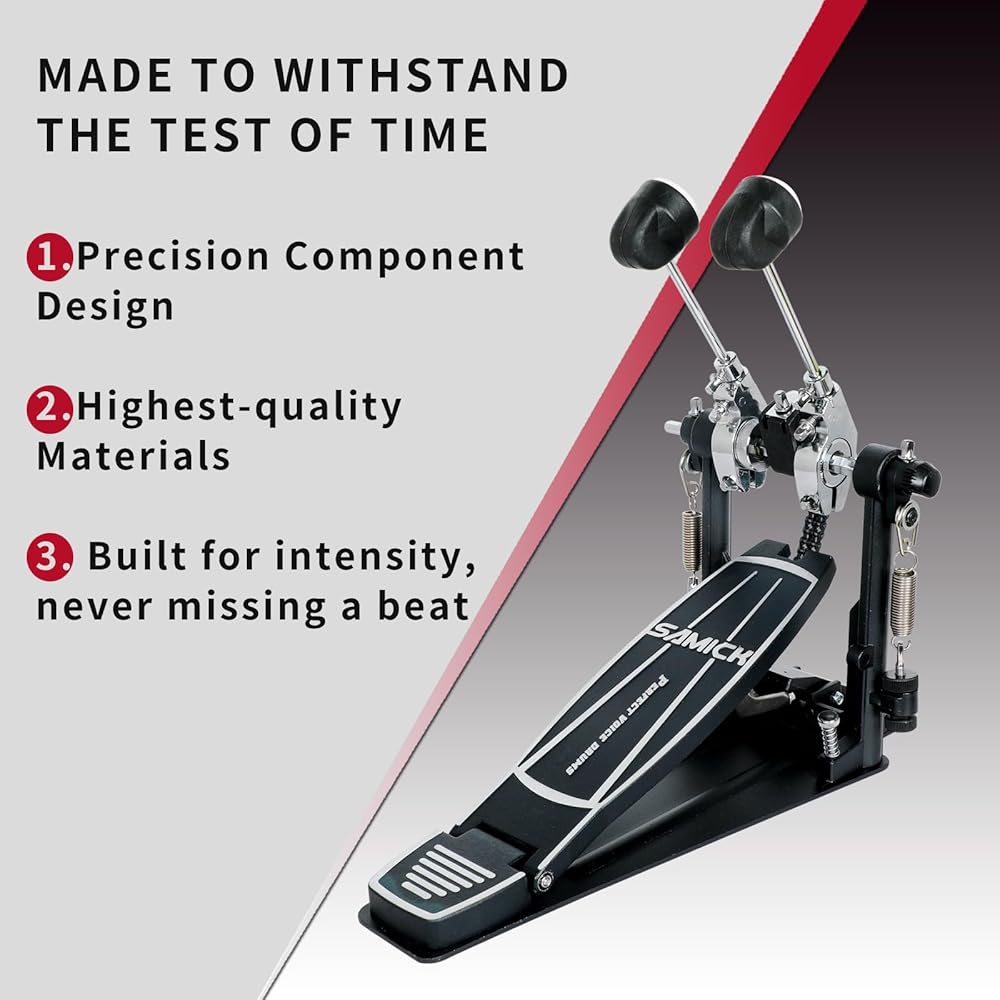 Easy to adjust-the hammer head is made of high-density wool felt and metal rods. The double bass drum pedal and the bottom drum can form a better bottom drum resonance, easily bringing you a comprehensive and powerful drumming experience.