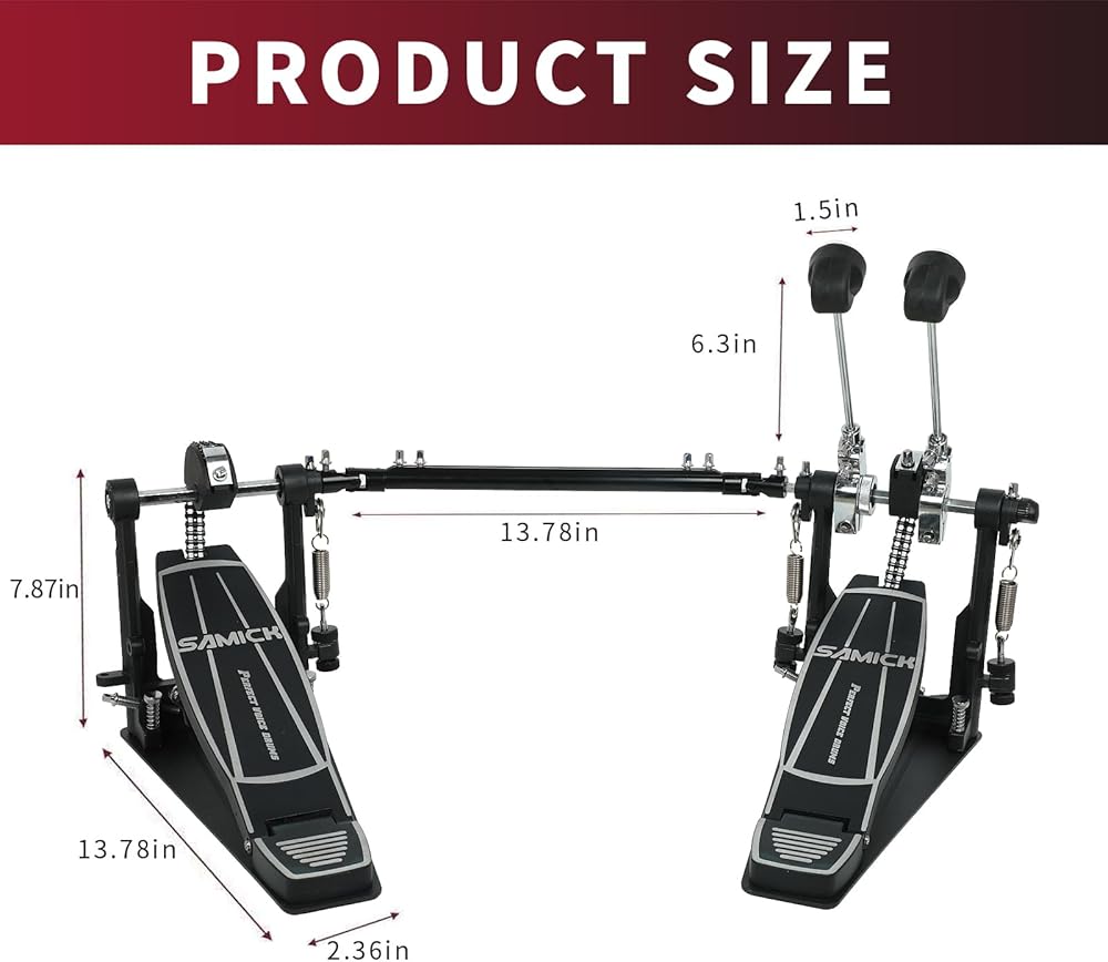 Adjustable spring tension-the width between the two drum pedals can be adjusted to 12 inches -22 inches. You can adjust the tension through the spring to suit your playing style.
