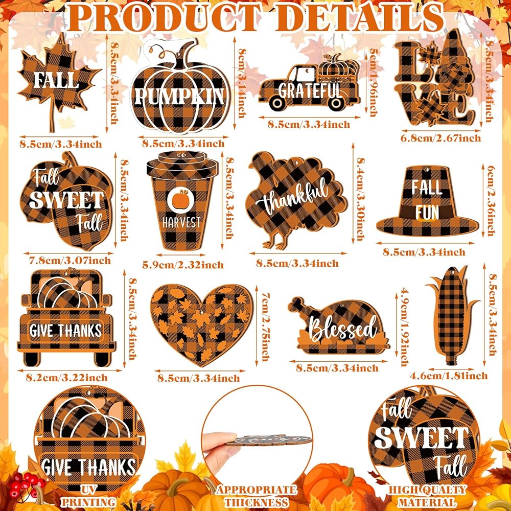 Easy to Hang: designed with a pre hole, with an attached string, these fall ornaments for tree can be easily hung on Christmas trees, walls, windows, or other places you desire, allowing you to effortlessly create a festive and cozy ambiance