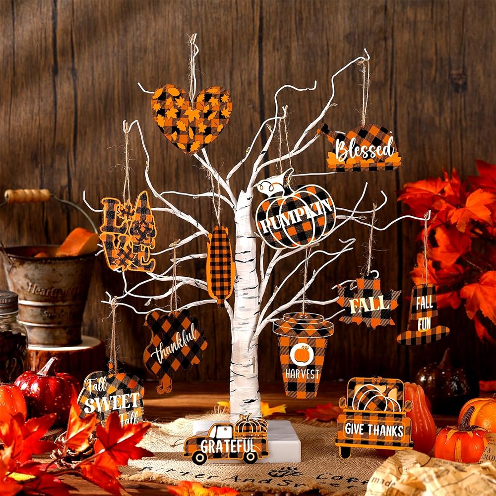 Versatile Applications: not limited to traditional holiday decor, these wooden hanging ornaments offer versatile applications, they can be applied as table centerpieces, garland accents, or even as gift tags, let your imagination run wild and explore the endless creative possibilities these ornaments bring to your fall decorations