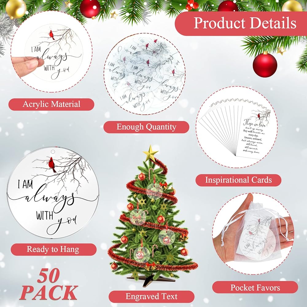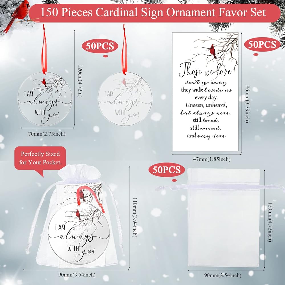 What's Included: you will get 50 sets of sympathy cardinal decors, including 50 pcs hanging cardinal ornaments for Christmas tree, 50 pcs poem cards and 50 pcs white organza bags, the abundant quantity can meet the needs of using and sharing