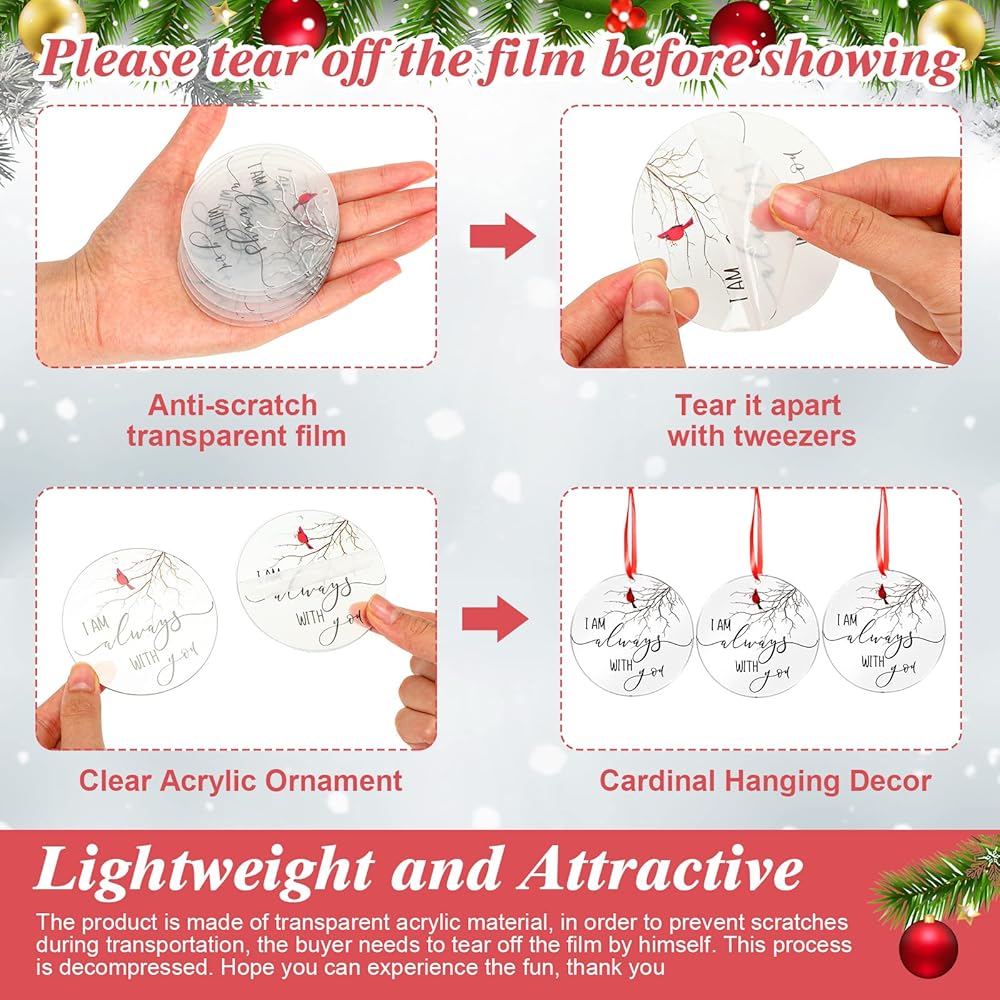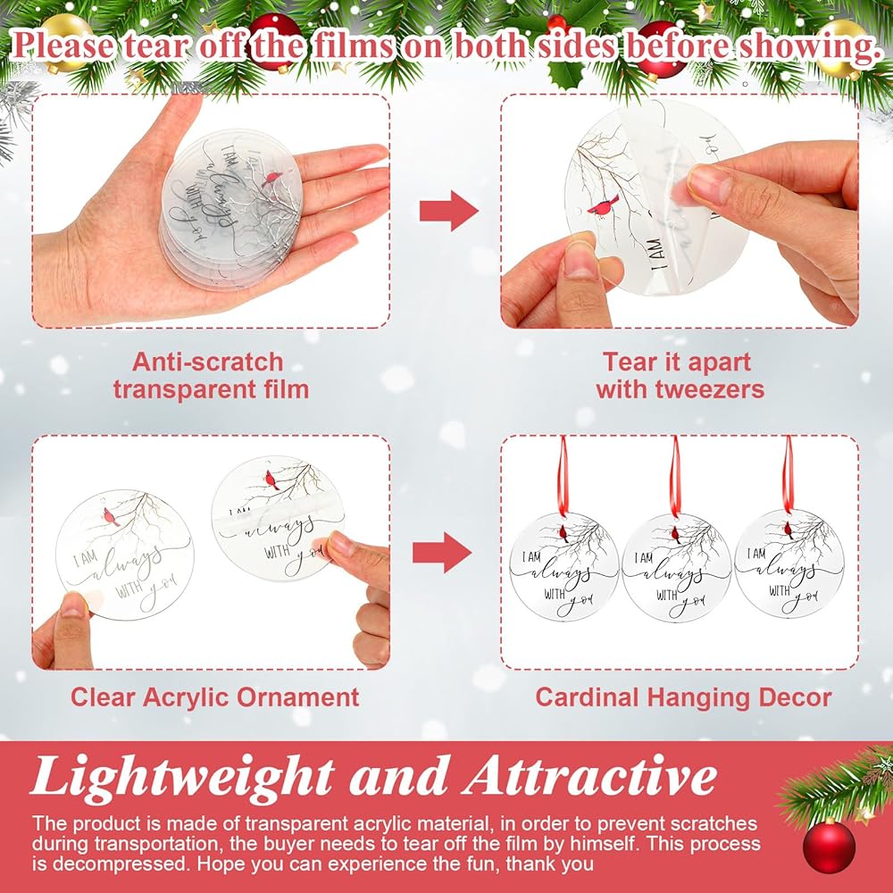 How to Use: when using, you need to tear the film on one side of the cardinal acrylic decor, then fasten the red ribbon and hang it on the Christmas tree, car, window or elsewhere as you need; You can put the acrylic pendant together with the card in the organza bag and take it with you