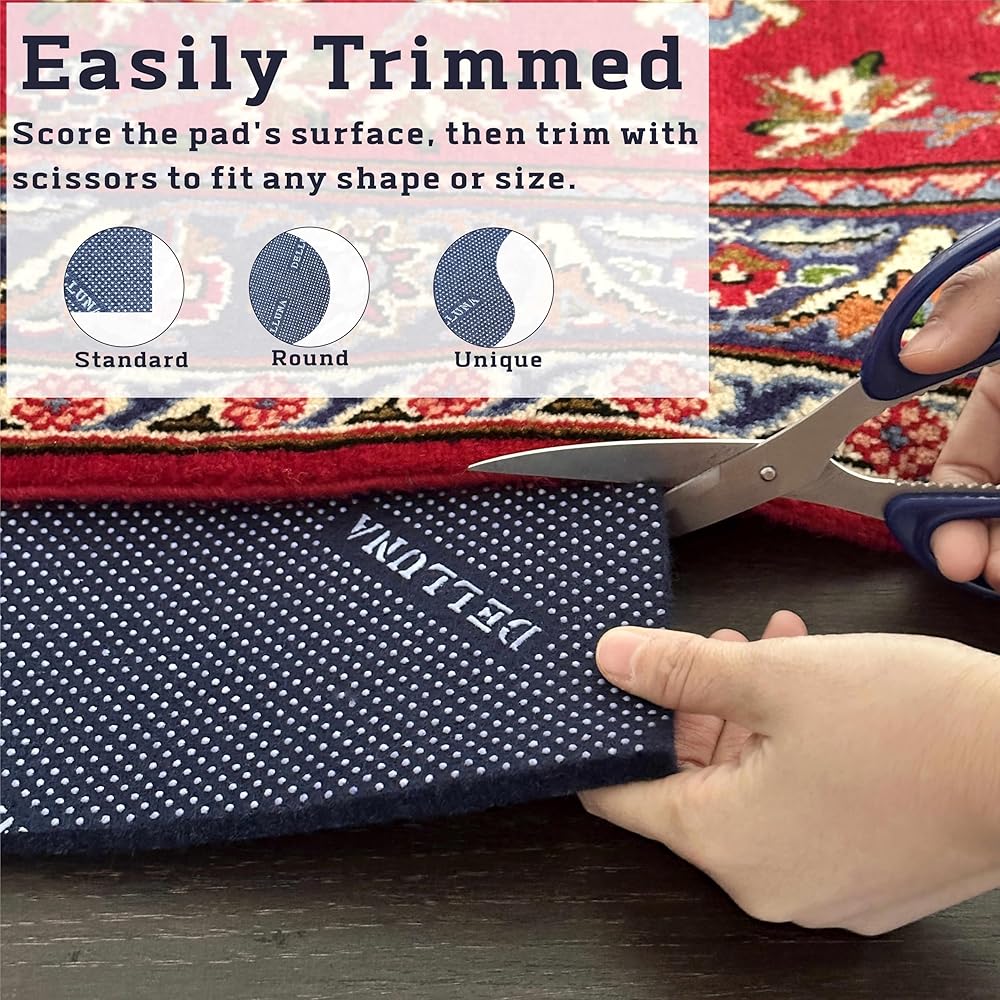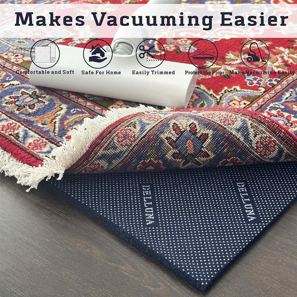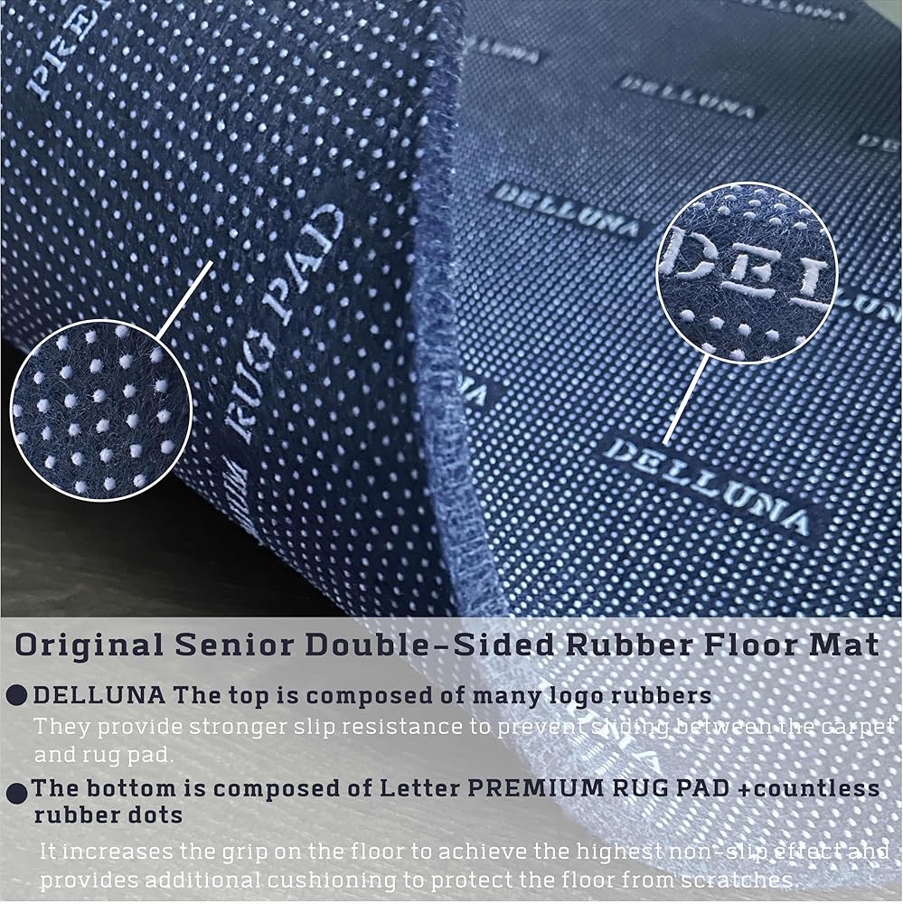 【DOUBLE-SIDED ANTI-SLIP RUG MAT】 The DELLUNA RUG PAD team developed the 100% new felt fiber+ double-sided rubber non-slip rug pads, providing twice the grip, holding the carpet firmly in place, and stopping the rug from moving. The natural rubber backing is ideal for added grip on hard surface floorings, such as hardwood, laminate, vinyl, and tile. Prevent slipping and sliding from everyday use or when children or pets play with it.
