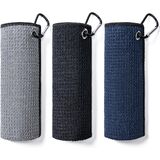 Great Value 3 Golf Towels:We've carefully selected three stunning color combinations that are not only the ideal size but also highly resistant to stains: black, blue, and gray. This gives you more options to coordinate with your golf bag! These make for excellent golf gifts!