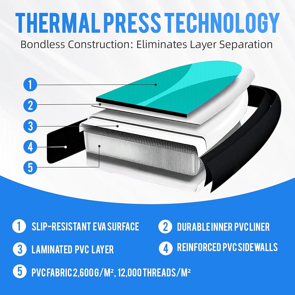 【Pro-Level Stability & All-Skill Versatility】Wider 31.5" deck & 6" thick core deliver 30% more rigidity than basic inflatables (tested at 18 PSI). Supports 330 lbs for family lake days or river touring - perfected for beginners through advanced paddlers.