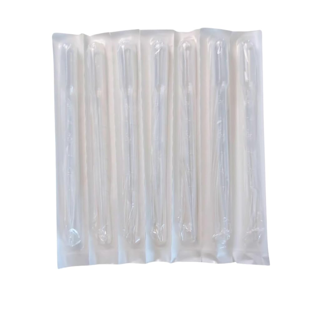 These sterile Pasteur pipettes are essential laboratory tools designed for precise liquid transfer and dispensing. Each 3ml disposable pipette is individually peel-packed to maintain sterility and comes calibrated with graduated markings for accurate measurements. Made from low density polyethylene (LDPE), these transfer pipettes offer excellent chemical resistance and flexibility. The dropper design allows for controlled dispensing of liquids, making them perfect for laboratory work, research, and scientific applications. With a total volume capacity of 7ml, these pipettes provide ample room for various liquid handling needs. The pack includes 100 pieces, ensuring you have plenty on hand for your laboratory procedures. These disposable pipettes eliminate the need for cleaning and sterilization between uses, saving valuable time in busy lab environments.