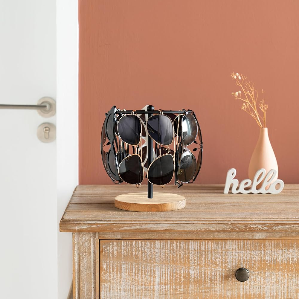 Simple & Stylish Design : Rustic round wood base and premium industrial iron are the perfect combination of retro and modern design styles. Suitable for a variety of style home decors. Great sunglasses rack to put on bedroom or desser desk to organized and display your sunglasses, eyewear and other accessories.