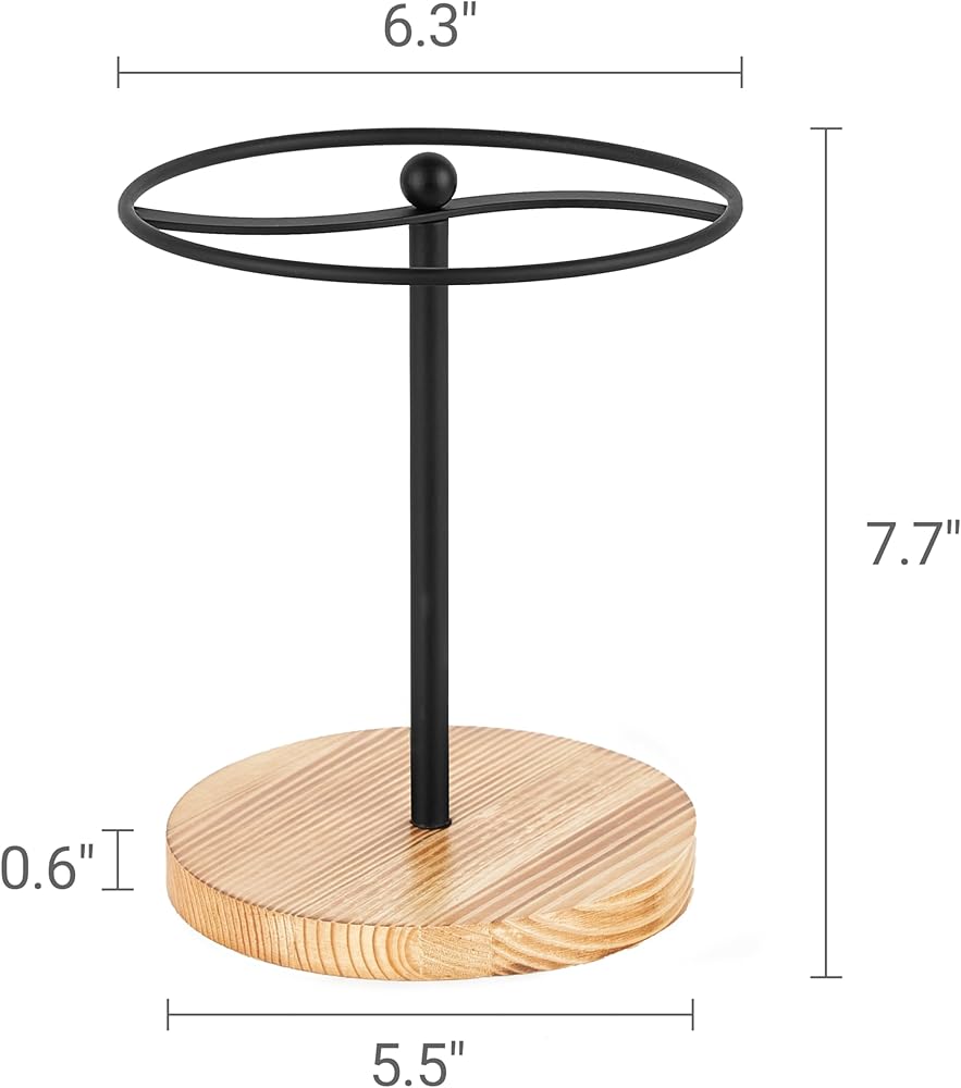 Easy to Install : It's easy to put the components together with the included hardware. Suitable for all different types of sunglasses while taking up minimal space on your tabletop. Size: Wooden base: 5.5"diameter x 0.6"thick; Iron coil: 6.3" diameter; Overall Size: 6.3"L x 6.3"W x 7.7"H.