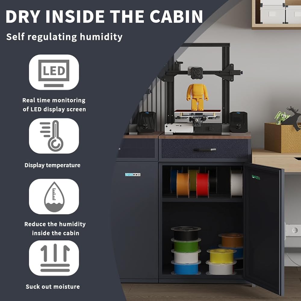 【Easy Assembly&After-sales】Say goodbye to complicated setups! includes illustrated guide and video tutorial for effortless installation.Allowing you to quickly set it up and start organizing your 3D printing workspace without hassle.If the cabinet is damaged, we will replace it with a new one. If the dehumidifier core is damaged within one year, we will replace it with a new one.