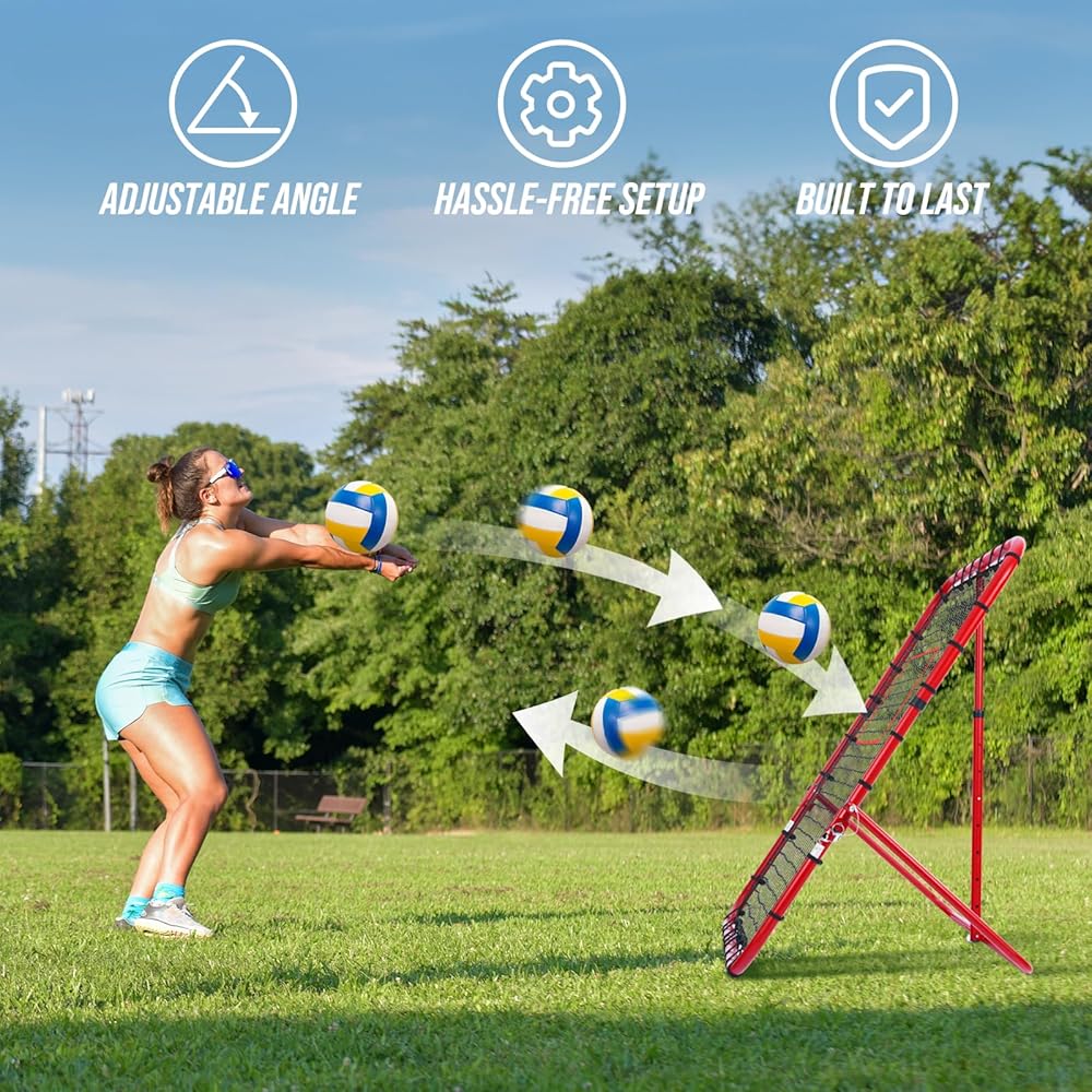 Adjustable Volleyball Rebounder Net with 90° Foldable Angle, Bounce Back Training Equipment for Solo Practice Volleying Bumping & Spiking – Sturdy Base, Easy Setup & Portable