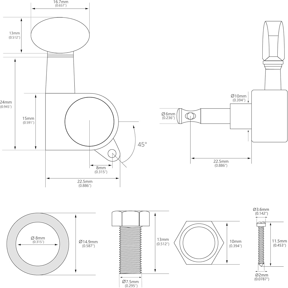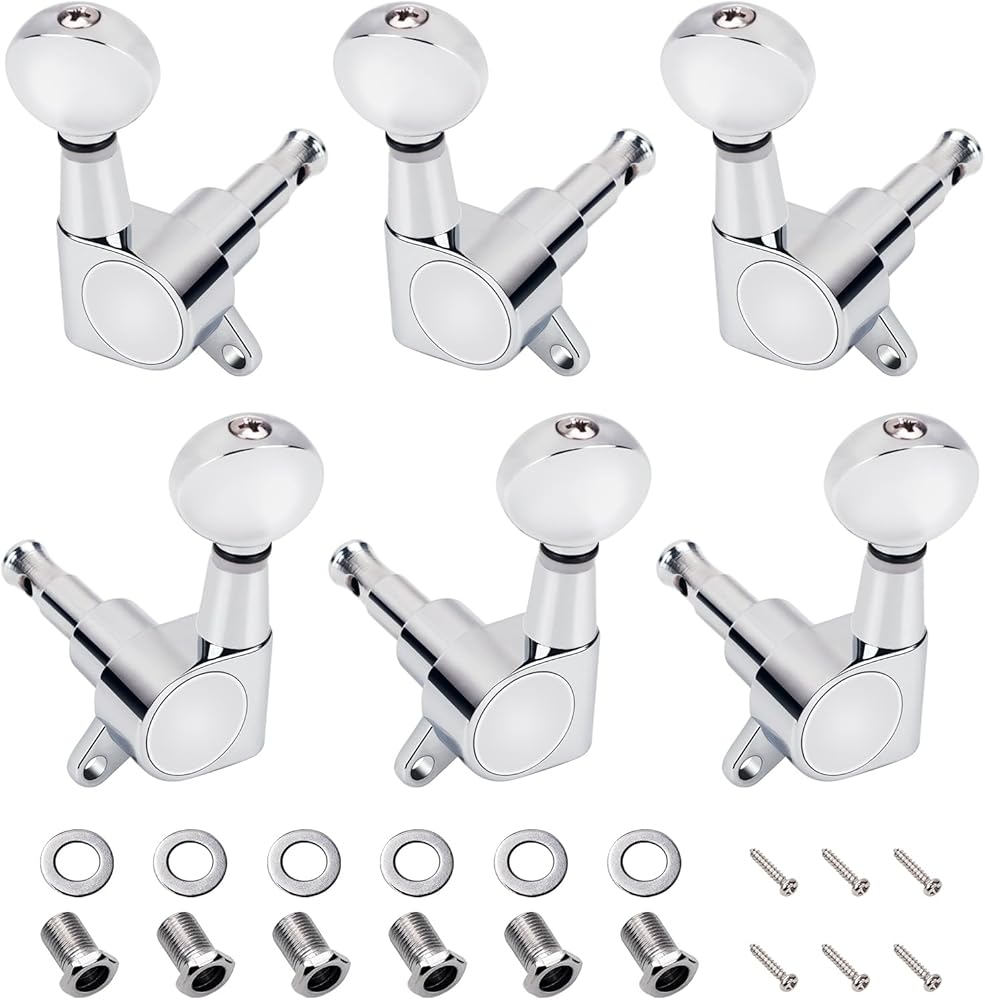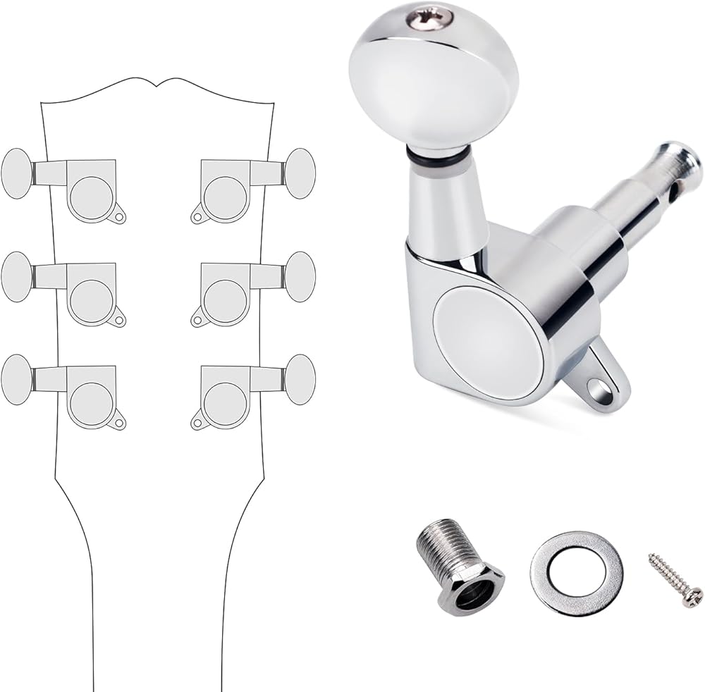Complete Package: Includes 6 tuning pegs (3L + 3R) along with a complete set of screws, bushings, and washers for easy installation and setup.
