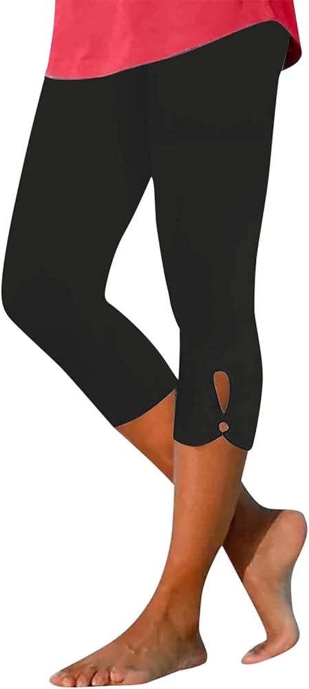 Capri Leggings for Women Cut Out High Waisted Lounge Yoga Crop Pants Stretchy Lightweight Knee Length Workout Tights