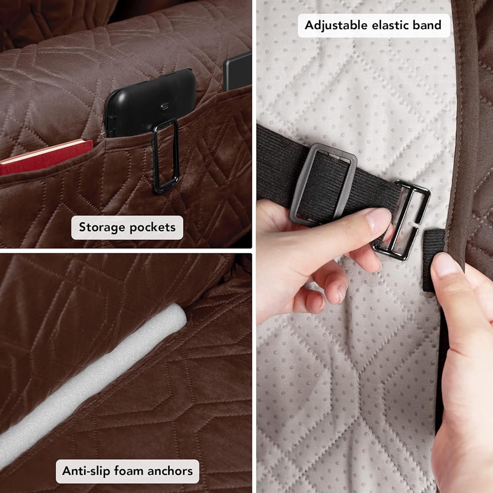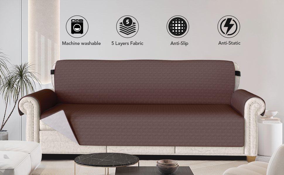 High-quality material: Our sofa cover is made of five layers of fabric, including surface microfiber fabric, soft cotton fiber filling, waterproof Tpu membrane layer, high-quality microfiber fabric, and anti-slip particle, making the cover sturdy and durable.