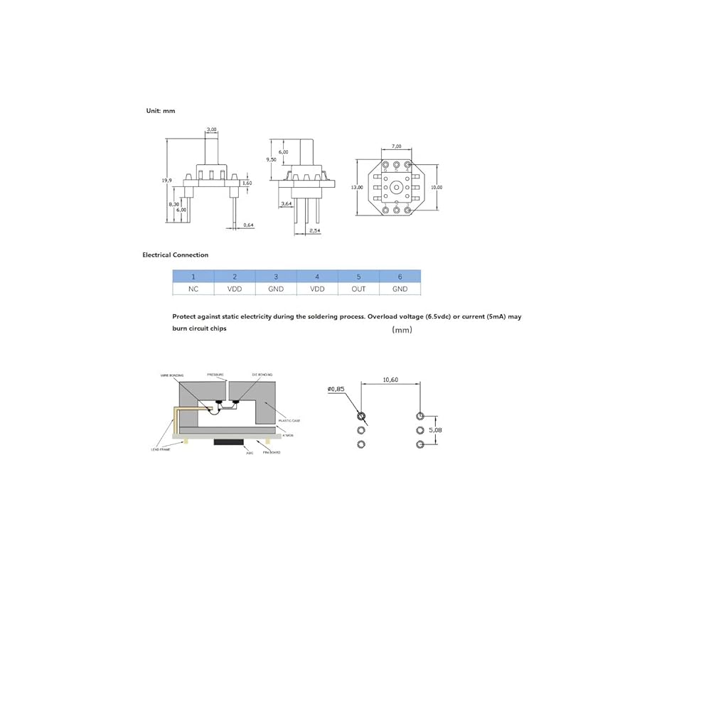 - 2 Pcs XGZP6847A 5V Gas Pressure Electronic Transmitter Sensor Module 0-40kpa
