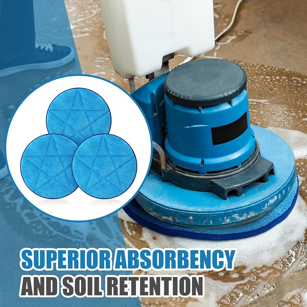 Dual-sided for Extended Use: our mopping buffing pad feature a dual-sided design with 100% microfiber continuous filament yarn, ensuring superior absorption and durability; This construction offers efficient dirt pick-up and retention, delivering long-lasting performance for all your carpet cleaning needs