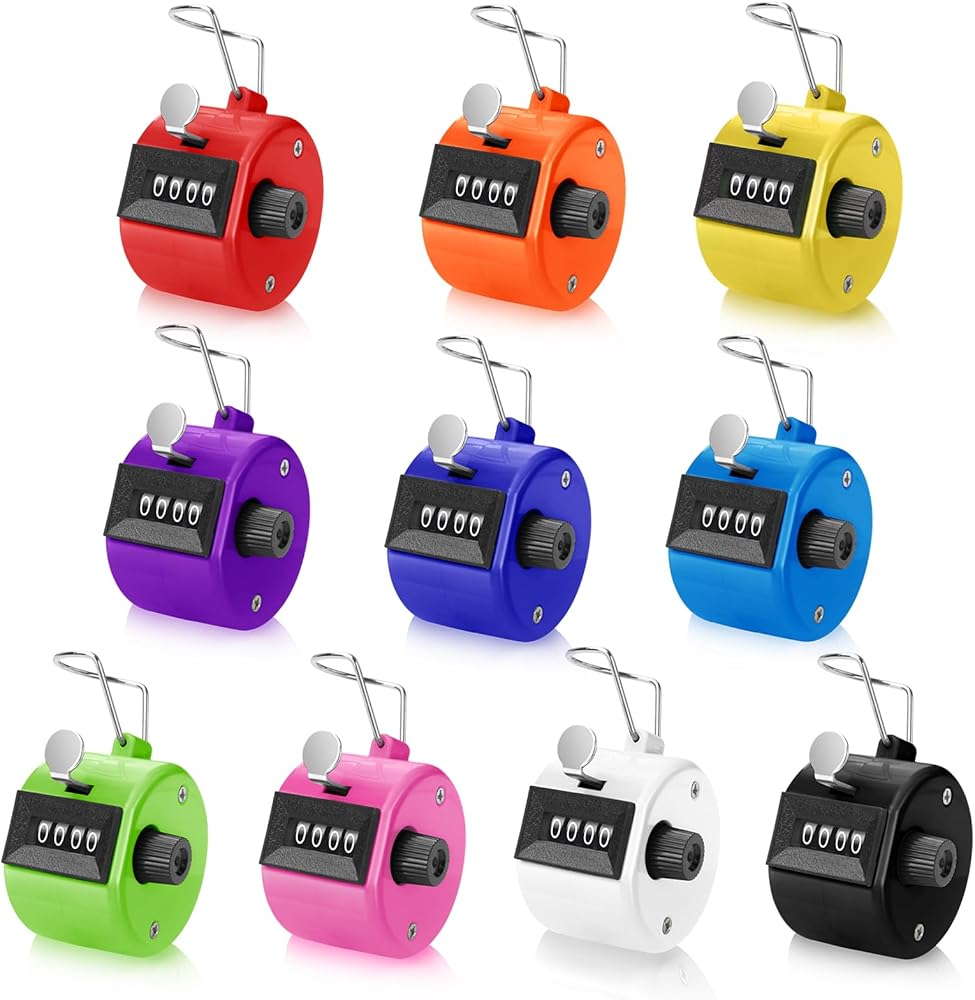 Handheld Tally Counter 4 Digit Mechanical Clicker Counter Multicolour Handheld Counter Clicker Plastic Pitch Counter for Counting School Golf Coaching Sports Knitting Events