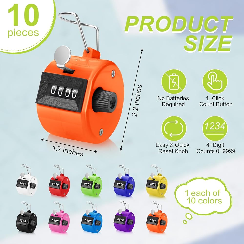Our 4 digit mechanical clicker counter is manual counting, no battery, simple operation, mechanical structure can accurately count to 9999, enough to calculate a variety of data; You simply press the button at the top of the hand held counter clicker, the counter reacts and counts accurately, and the reset knob on the side can be easily and quickly reset to 0 with just a few clockwise turns. Note that these clickers cannot subtract numbers