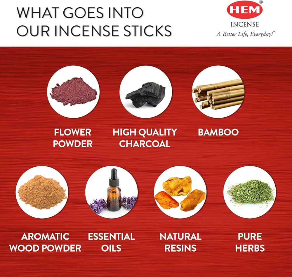 - Box containing six 20 gram (around 20 sticks each) tubes of incense