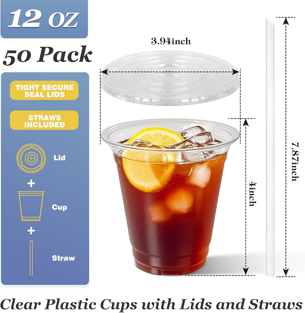 【Comprehensive Value Set】: Includes 100 sets of plastic cups, secure lids, and individually wrapped straws, as a coffee bar accessories offering convenience for daily use , travel or special events