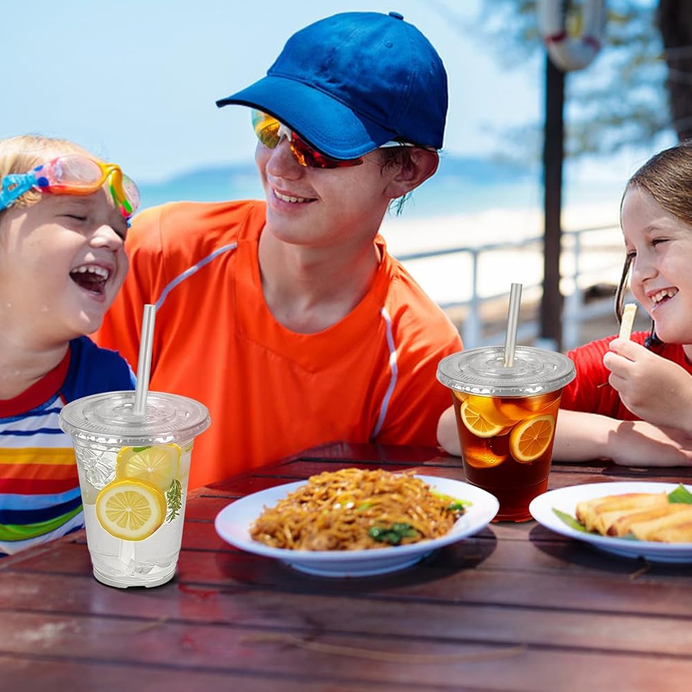 【Crystal-Clear Appearance】: The clear PET material enhances the visual appeal of drinks, making them look upscale while providing excellent visibility of contents