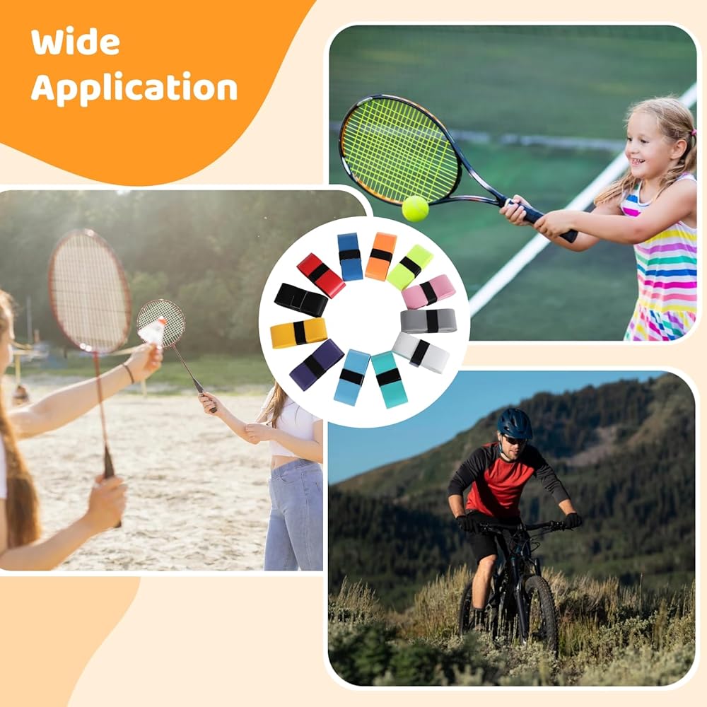 Versatile Multi-Sport Use: These overgrips are perfectly suited for various items including tennis, badminton, pickleball racquets, bicycle handlebars, and fishing rods, offering consistent performance across various scenes
