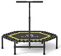 CLORIS trampoline Recommended reason: Trampoline exercise is a great and fashionable sport.Daily 10 minutes of jumping would efficiently burn calories, strengthen blood circulation, equals 1-hour jogging, 30 minutes cycling or 20 minutes swimming. Features of CLORIS mini trampoline 1.Exercise folding trampoline is made of high-quality pp stretch fabric, reinforced waist drum spring, 4 levels adjustable handle bar and six anti-slip soft rubber feet. 2.Strong elasticity, not easy to fracture, more stable and durable, not to hurt the feet, both suit for adults and kids.Trampoline is easy to install(Within 5 minutes), the 2 times folding design is easy to store in the oxbag to put in any corner of the house, and can be carried to any place you want to go.