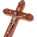 - Handcrafted wooden crucifix with nailed-on metal body of Jesus Christ.