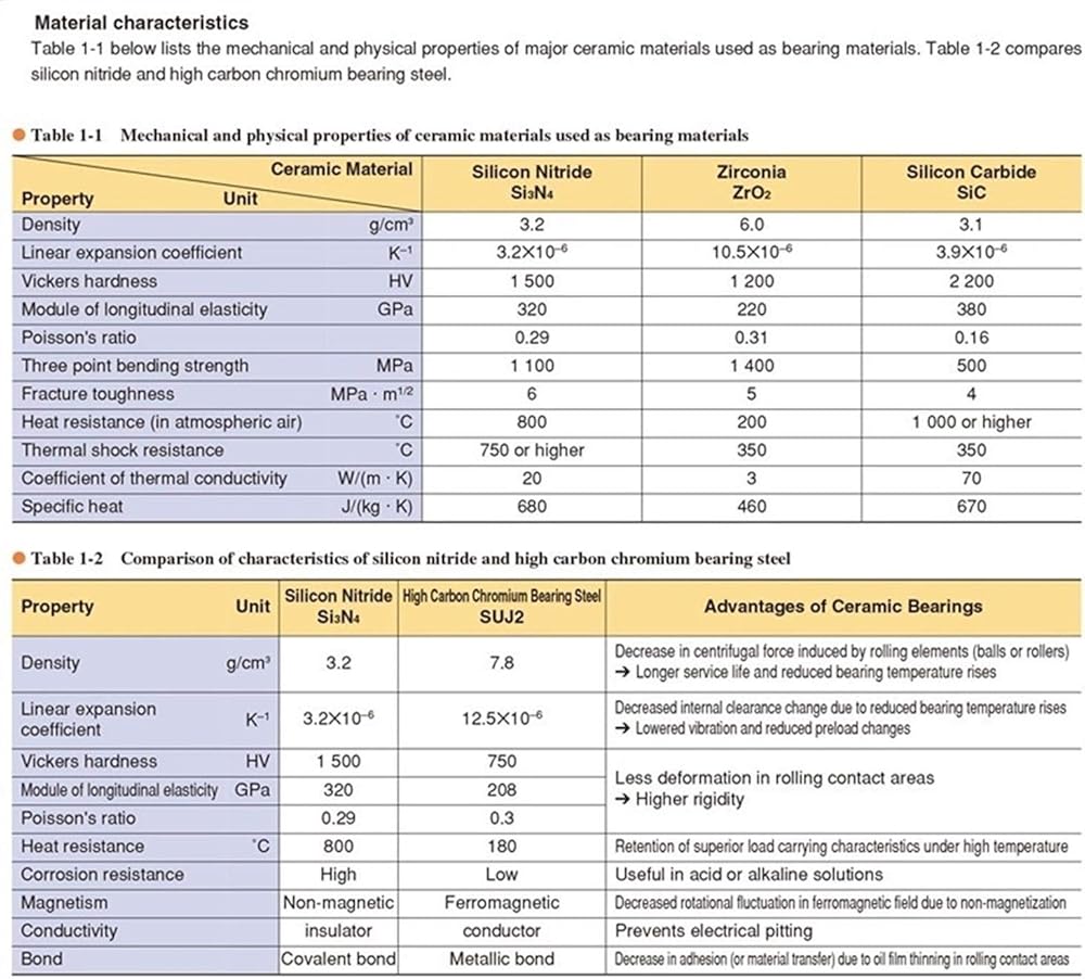 Ceramic Bearings are highly heat resistant enabling a rolling bearing to be practical in a high temperature environment. The low density of ceramic decreases the centrifugal force induced by rolling elements (balls or rollers) contributing to an increased speed of the apparatus.