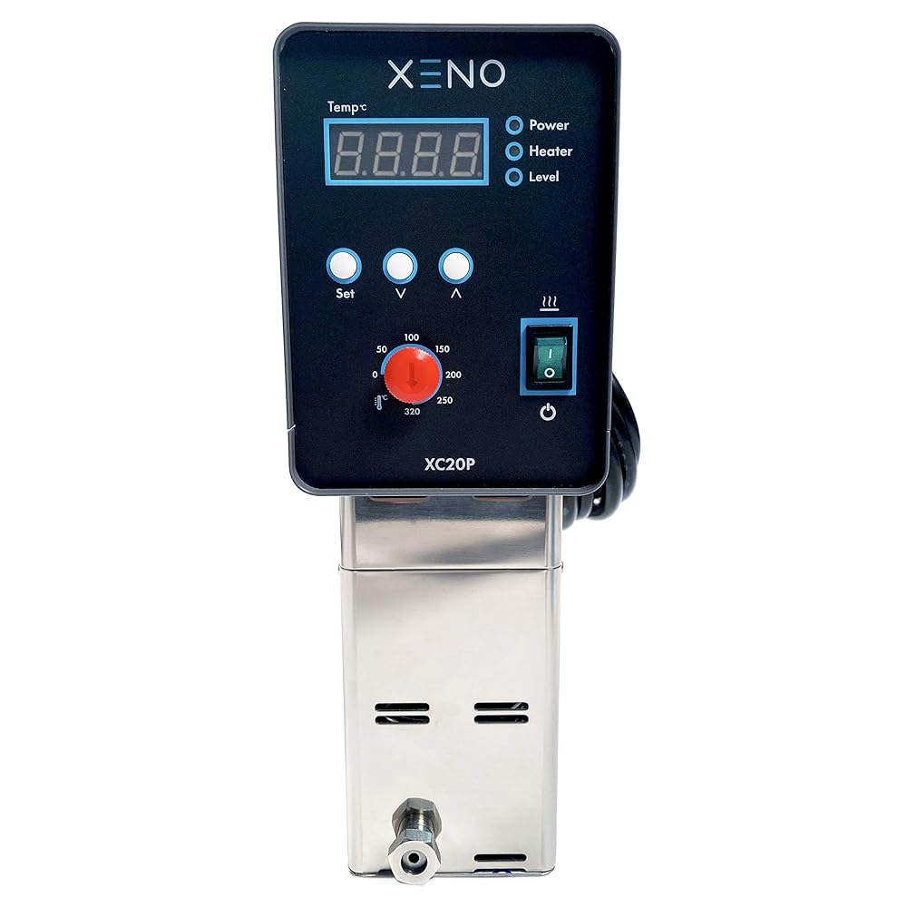2000 Watt industrial-grade laboratory heating instrument. An ideal solution for water bath heating compared to low power Sous Vide heaters intended for cooking.