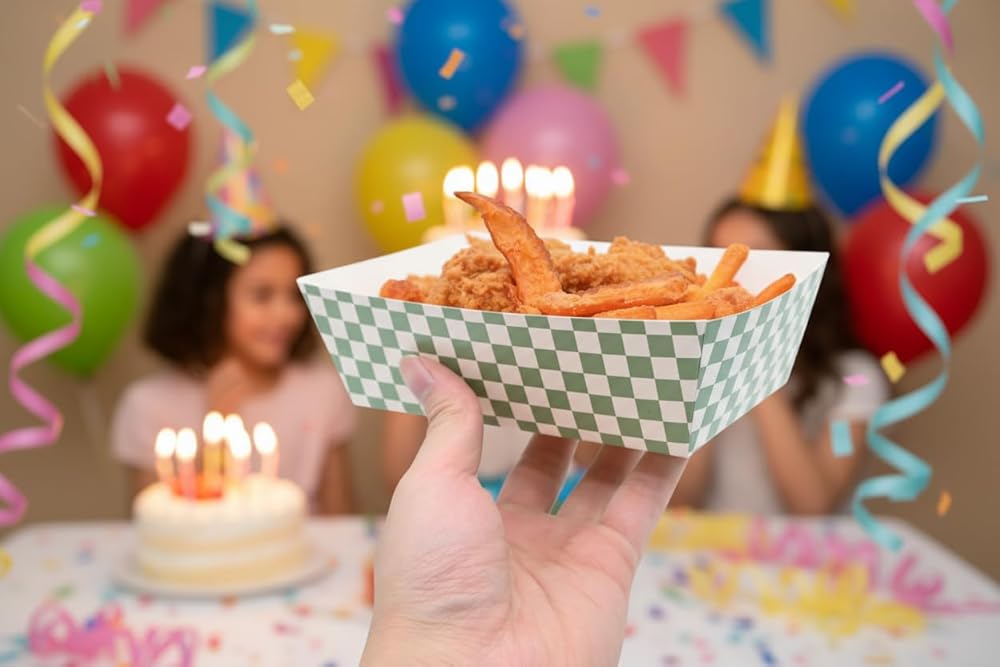 Widely Scenes: these gingham paper boats for food are supplies for birthday parties, weddings, picnics, dinner parties, carnivals, tea parties, holidays, barbecues, restaurants, concession stands, food trucks, stadiums, theaters and more