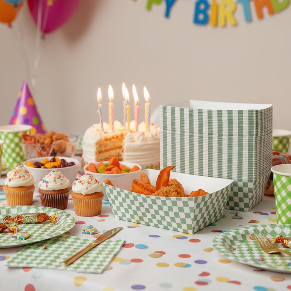 Classic Plaid Design: these gingham nacho trays are designed with classic checkered pattern, suitable for all kinds of festivals or home parties;