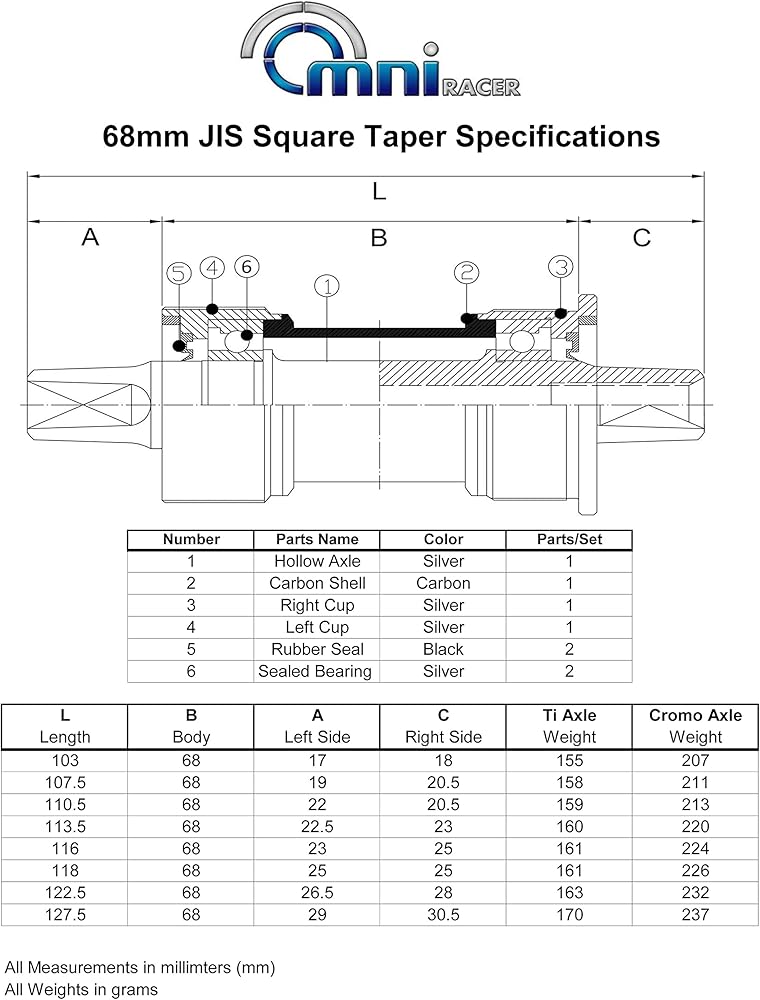 SUPER LIGHTWEIGHT & STIFF HOLLOW TITANIUM SHAFT: Strong and stiff CNC machined hollow titanium shaft for extra weight savings. JIS 2.0 degree square taper shaft