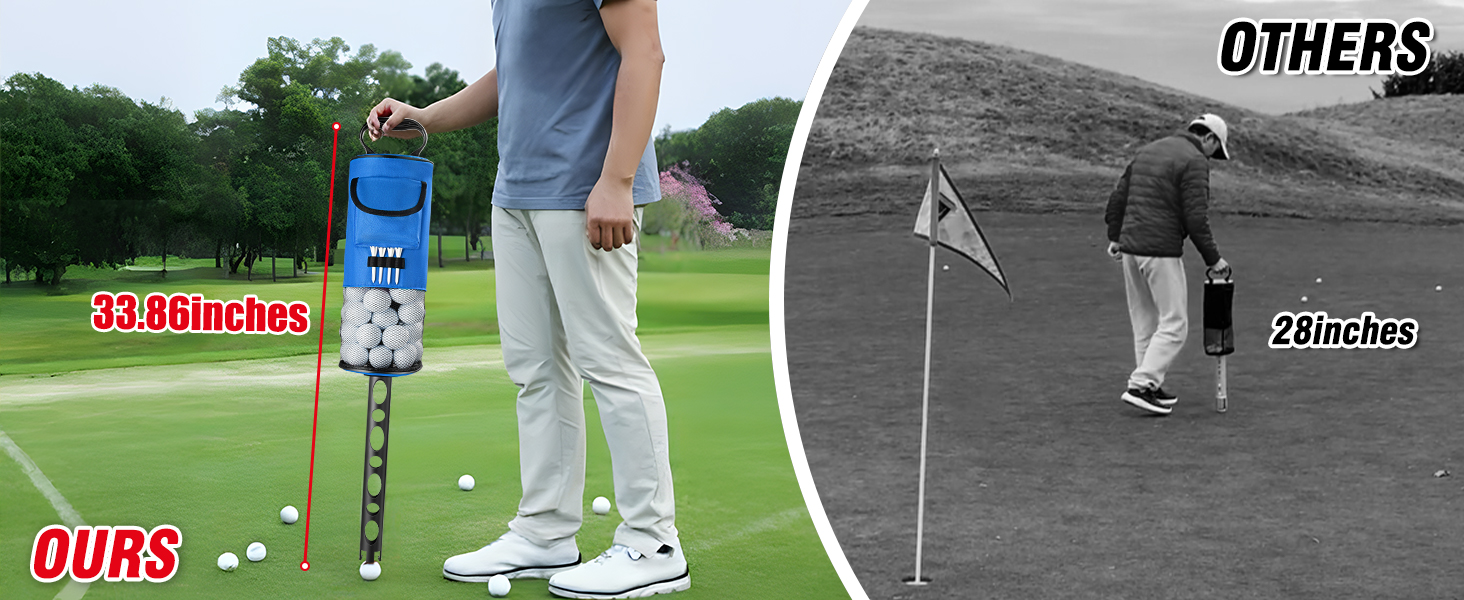 Innovative Design, Enjoy Family Golf Time: We've specially designed 4 extra tee slots for the golf ball shagger to store golf tees and added an extra pocket to effortlessly hold your wallet, keys, golf accessories, and other small items. Greatly enhances the convenience and fun of family golf time.