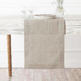 PRODUCT - Navy Blue Linen Table Runner, Hemstitch, 14 x 144 Inch; handcrafted by specially trained artisans in small batches.