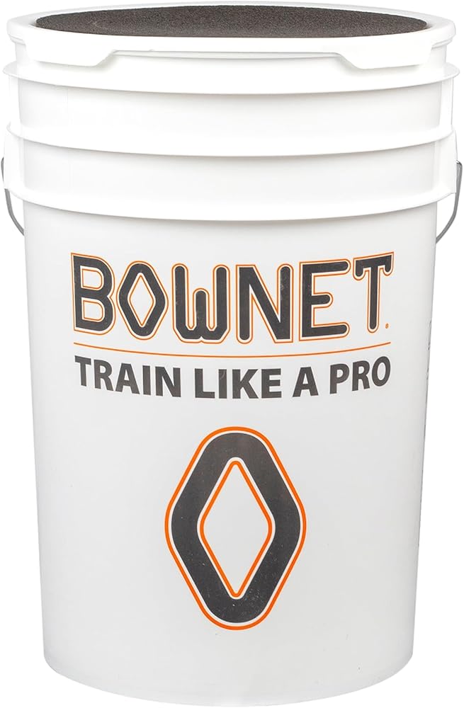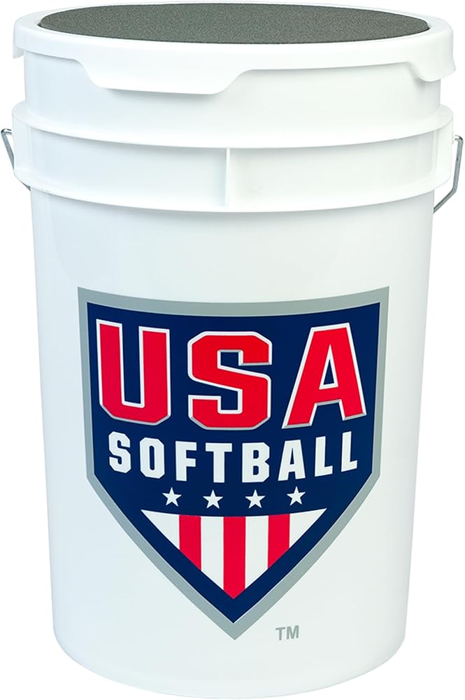 SOFTBALL AND BASEBALL COACHING ACCESSORIES - The Bownet Baseball Bucket with padded seat lid is perfect for coaches, league players, and anyone with bulk athletic equipment