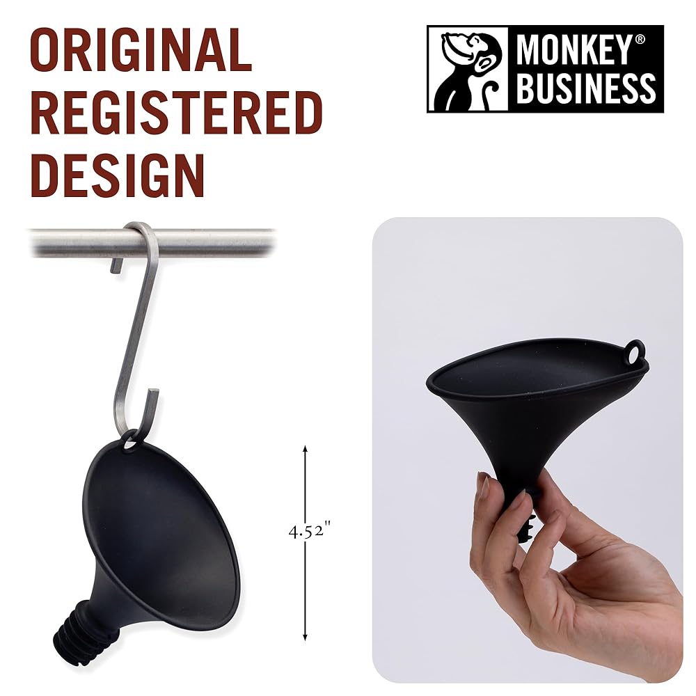 NO MONKEY BUSINESS WHEN REFILLING: The silicone funnel for water bottles uses a unique design with a ventilation channel that prevents splashing to ensure a no-leak and mess-free pouring experience every time. Perfect for filling bottles with juice, water, oils, powders, spices, and much more.
