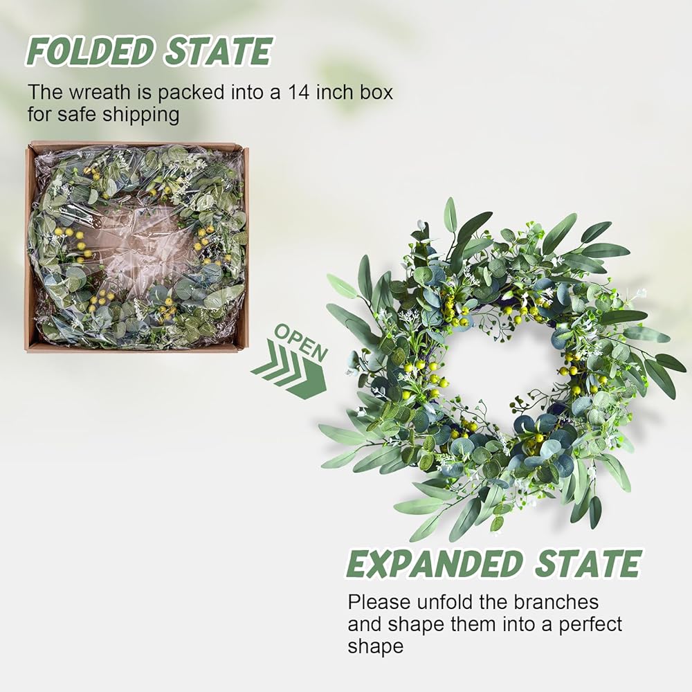 ❀Occasion: bainianMS designer wreaths is also suitable as indoor wreath, outdoor wreath, wedding wreath,welcome wreath,spring wreath, Easter, Thanksgivingetc.Of course it's also suit for sitting room, hotel, wedding scene, wedding car, villa and wall decor & home decor, photography background etc. This eucalyptus wreath is perfect for all seasons.