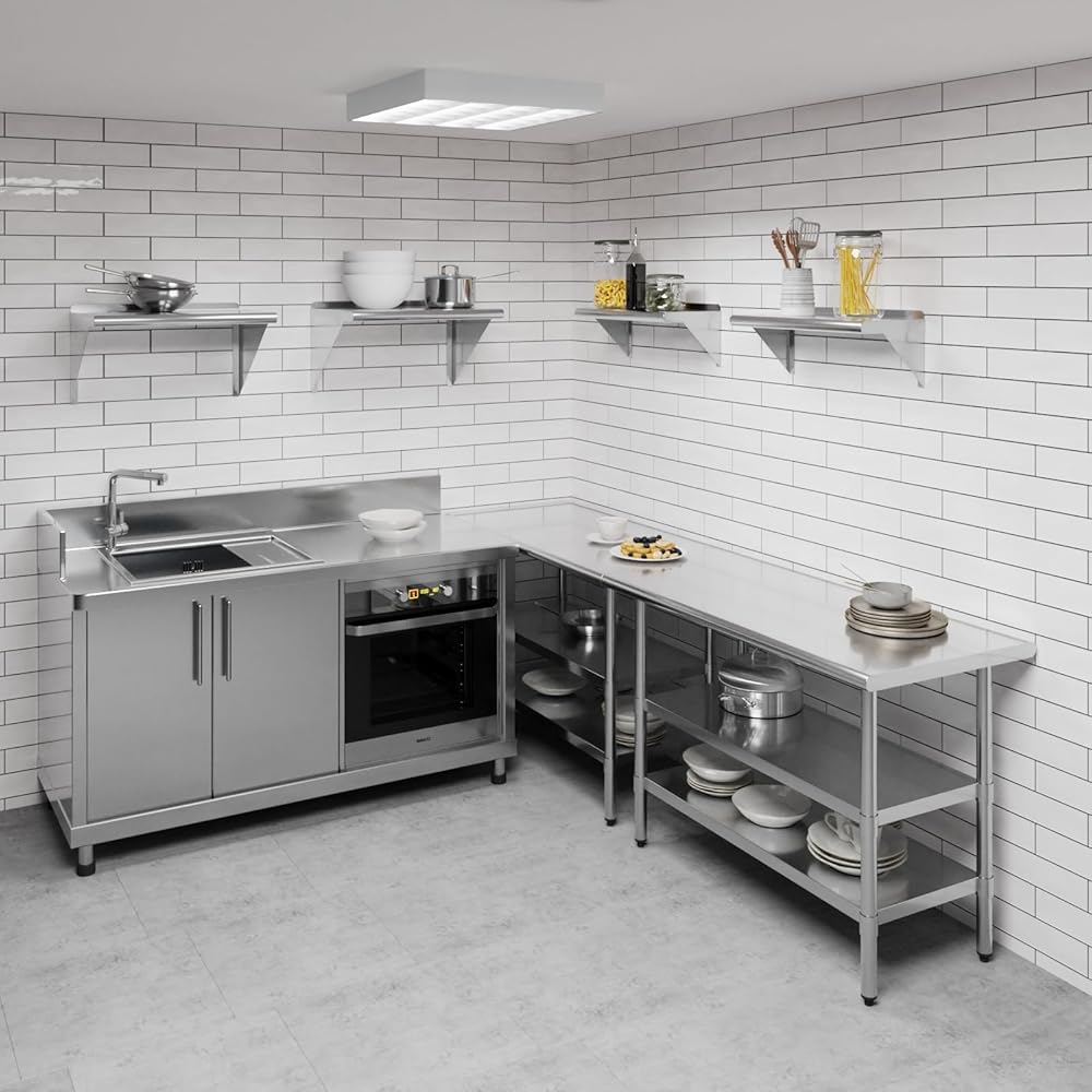 Commercial grade heavy duty quality, Suitable for commercial and residential use, Easy to assemble and install. This corrosion resistant wall shelf can handle anything you throw at it and will last for years to come. Easy to clean and sterilize, metal shelves are superior to wood or glass. Food and liquid won't get stuck or ruin the integrity of the surface. Easily wipe away excess with no fuss, mess, or contamination.