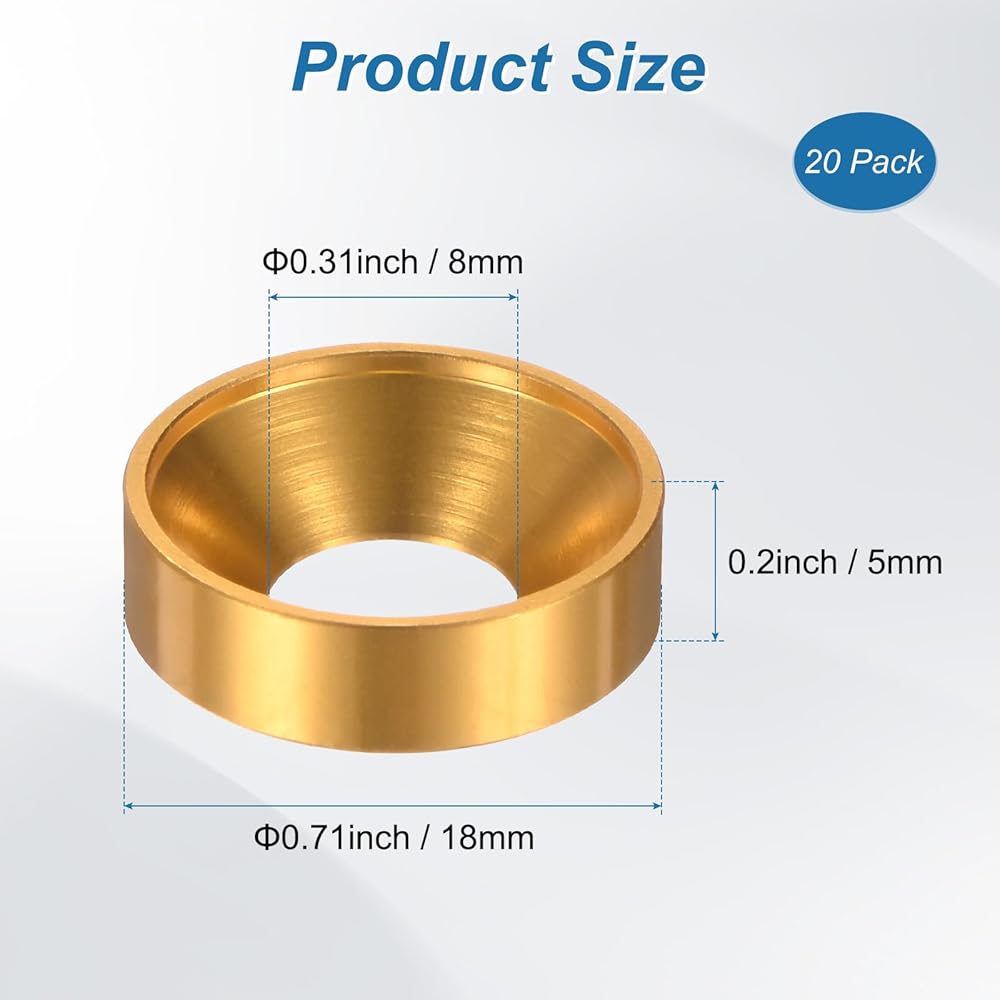 [Size & Package] - Each package contains 20 countersunk finish washers with an inner diameter of 8mm (0.31 inches) and suitable for M8 screws or bolts. With an outer diameter of 18mm (0.71 inches) and a thickness of 5mm (0.2 inches), they are designed to meet various fastening needs effectively