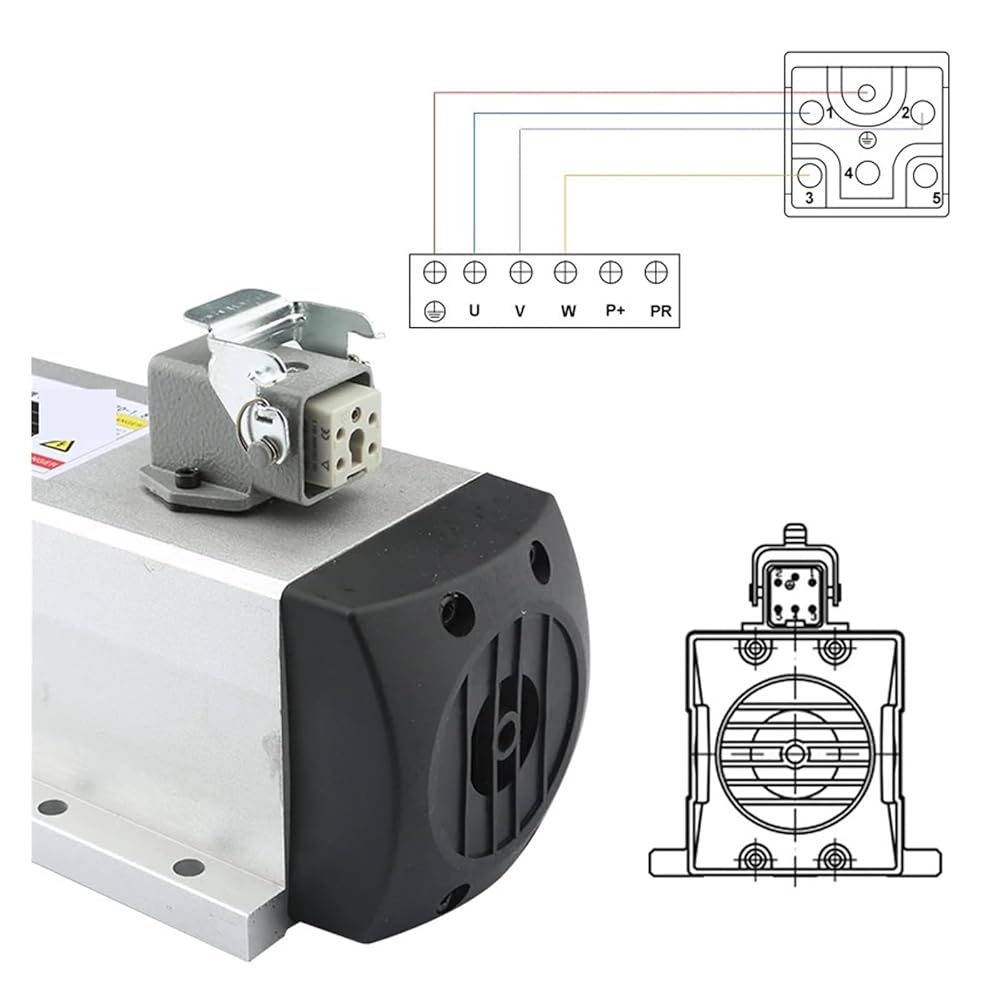 Power interface: 6-pin square aviation plug is optional. The aviation plug is marked with "1", "2", "3", "4", "5" and "GND". "1", "2", "3" are connected to the inverter (U, V, W), and "GND" is connected to the inverter ground.