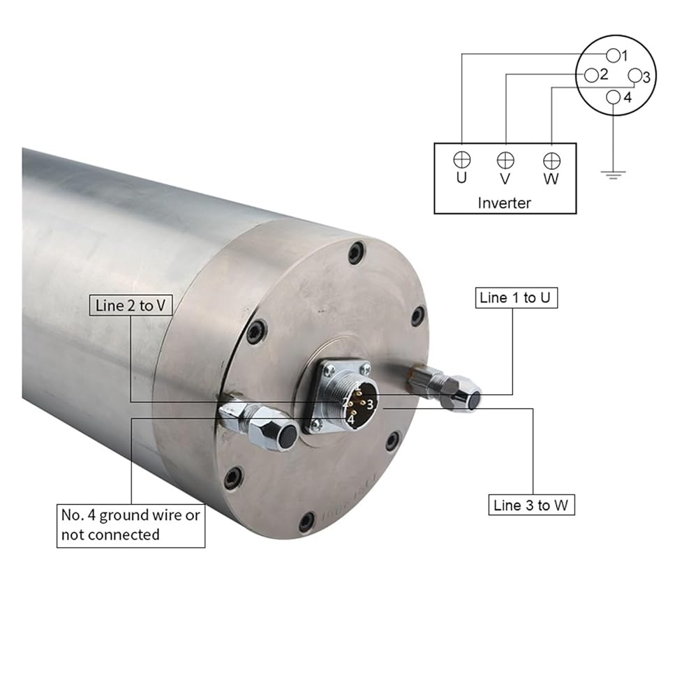 Power interface: An optional H20-4-pin waterproof aviation plug is available. Connect the aviation plugs marked "1," "2," "3," and "4." Connect "1," "2," and "3" to the inverter (U, V, W), and connect "4" to the inverter ground.