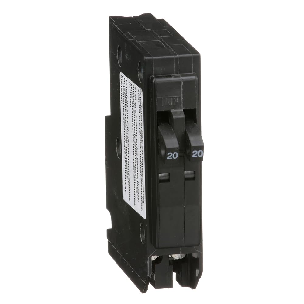 Square D QO QO2020 Tandem Miniature Circuit Breaker, 120/240 VAC, 20 A, 10 kA, 1 Pole, Thermal Magnetic Trip