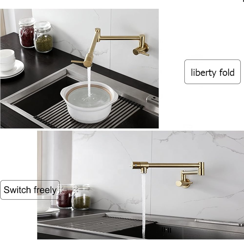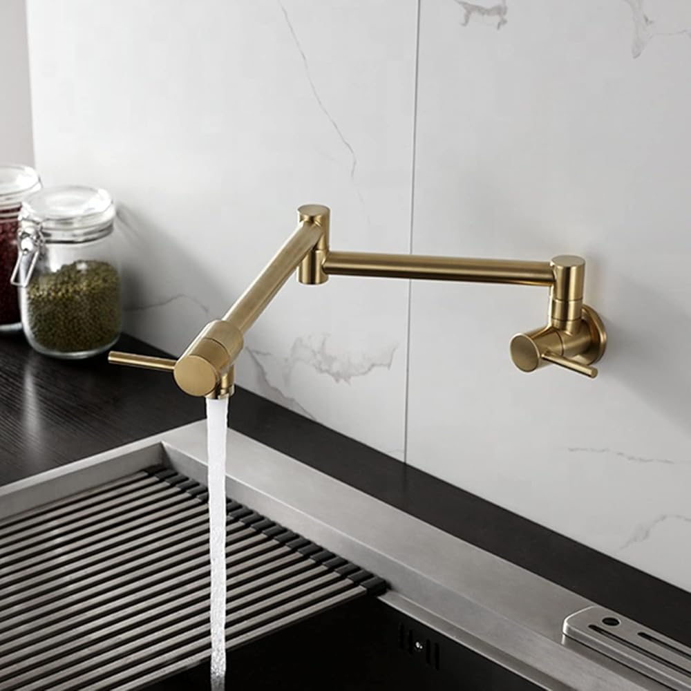 Pot Filler Faucet Wall Mounted Foldable Kitchen Faucet Single Cold Single Hole Kitchen Sink Tap Solid Brass Double Joint Swing Arm Kitchen Tap Dual Handle,Gold(Antique Bronze)