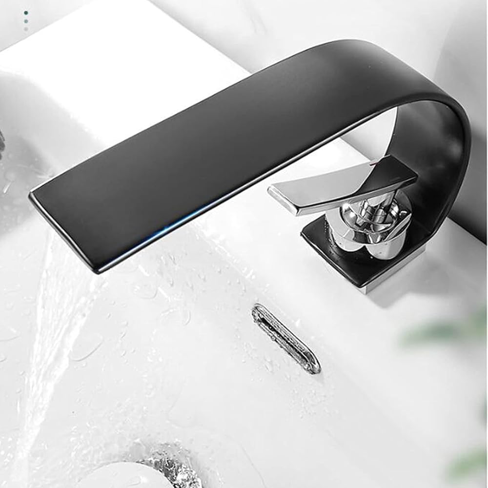 Basin Faucet Modern Waterfall Bathroom Solid Brass Wash Basin Single Handle Hot and Cold Bathroom Sink Mixer Tap, One Hole Vanity Faucet,White(Black Chrome)